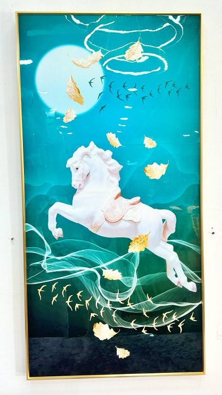 60 x 120 Classic white running Horse wall Décor crystal Frame