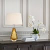 Enjoy luxury and durability in this piece of lamp. made to perfection with a white fabric shade and a very dense glass body stand. powered by a cable and switch control. suitable for; Living Room, Bedroom, Dining Room, Office, Hotel, Leisure Room, Study, Club, Apartment, Etc.