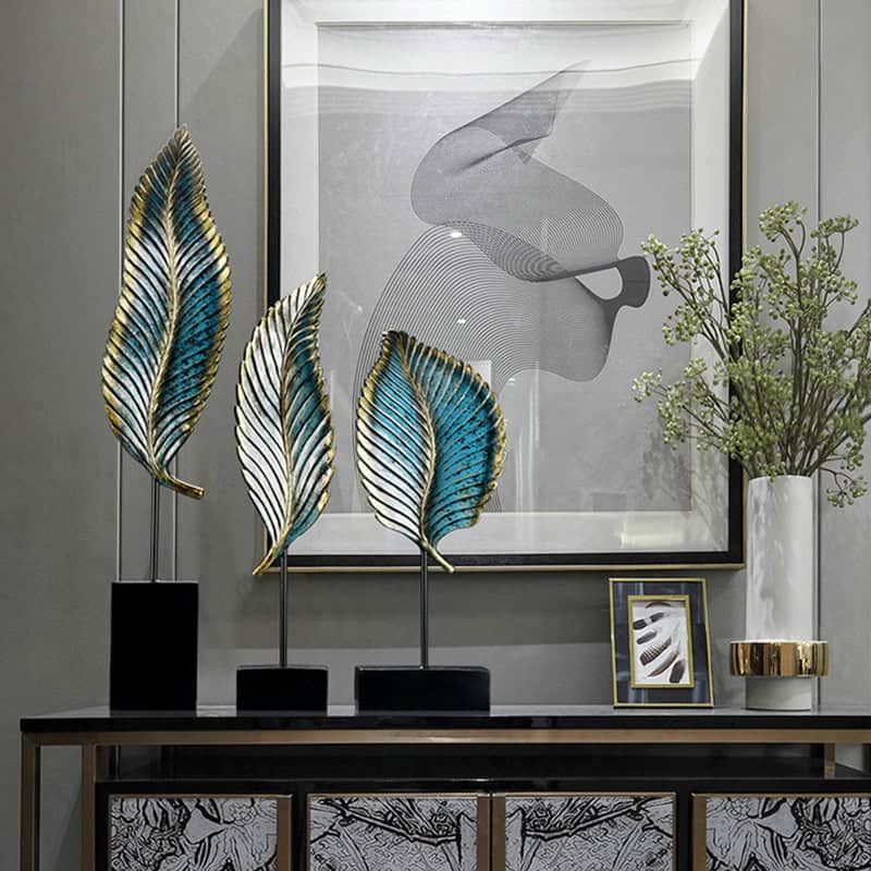 Artfully compact and gently arched, the Azure Plume – Curved is a resin-crafted feather sculpture that plays with symmetry and style. Its rich turquoise-blue surface is softened with ivory streaks and a touch of gold, exuding a refined yet playful charm. A versatile piece that fits beautifully in small spaces or layered décor arrangements.