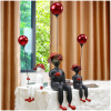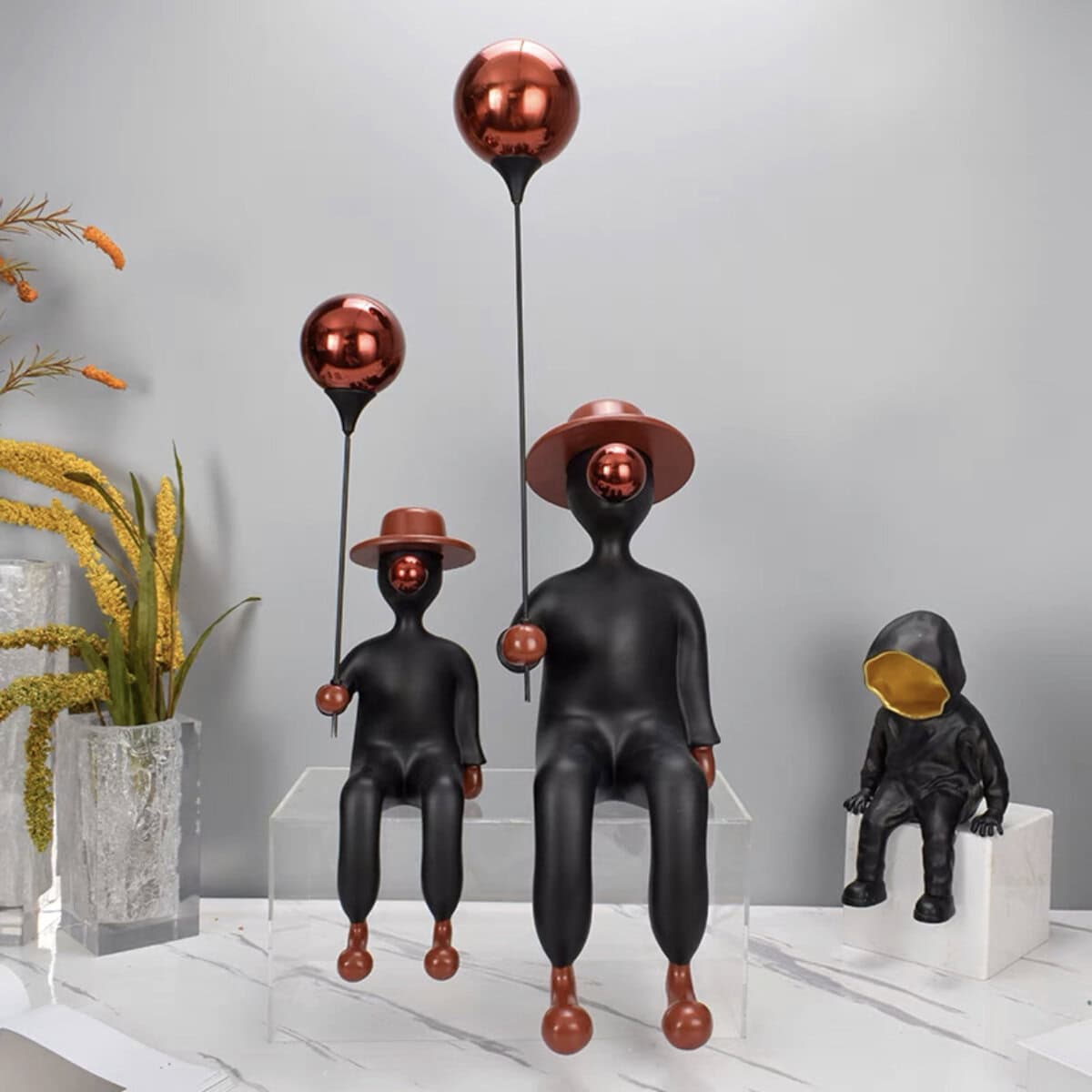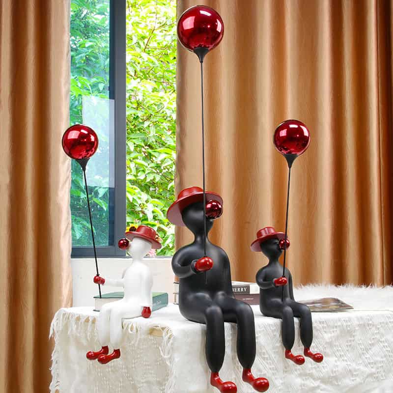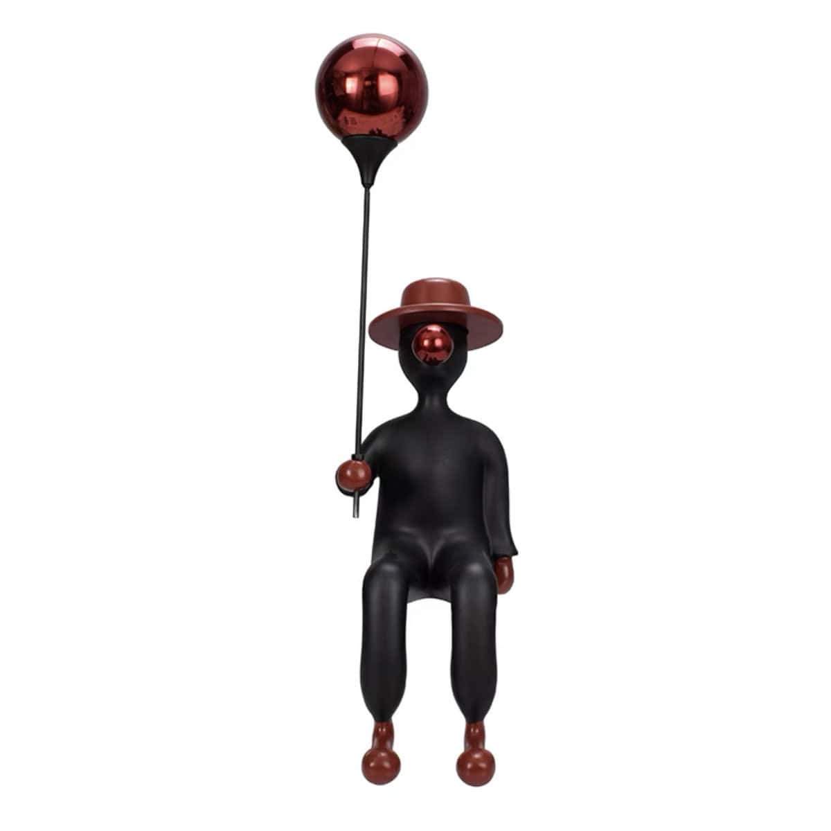 A striking large black clown ornament featuring a glossy red hat, vibrant red arms, feet, and a matching red balloon, creating a bold and eye-catching decorative piece. Its detailed craftsmanship brings character and playfulness, making it perfect for shelves, living spaces, or themed décor. The combination of glossy and matte finishes adds depth and sophistication, making this clown ornament a standout statement in any interior setting.