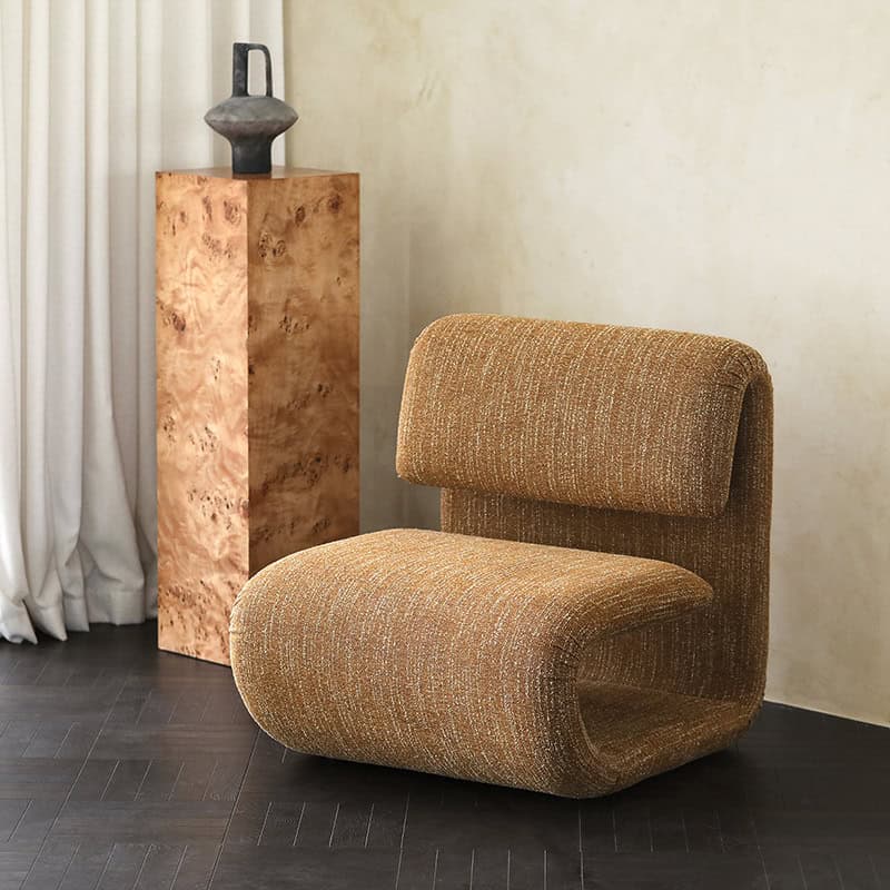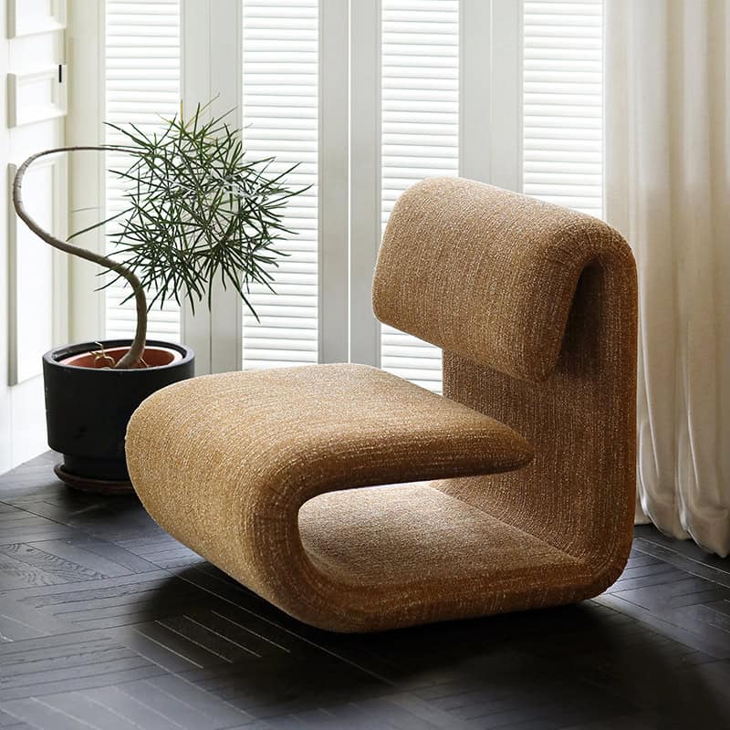 Expertly upholstered in premium fabric, the Luna Curve Accent Chair embodies refined comfort and sculptural sophistication. Designed with a sturdy, curvaceous silhouette, this statement piece features a seamless form without visible legs, creating a grounded and architectural presence that enhances contemporary interiors.