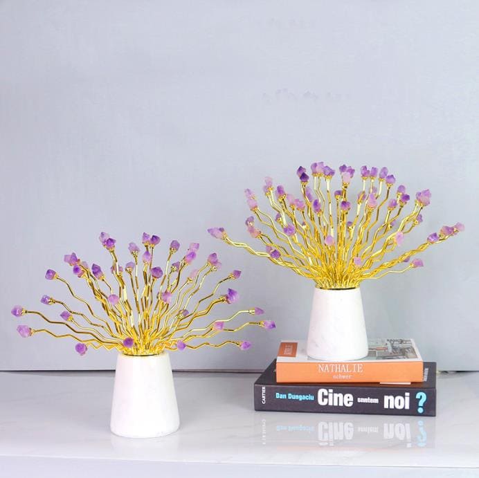 Creating visual enjoyment of spatial art, Show taste and minimalist design, Can easily adapt to different scenarios Becoming a source of inspiration for illuminating daily life. this decor symbolizes luck, prosperity and enhances the power of an individual. This beautiful crystal is a huge positive energy generator that helps bring healing, meditation, peace of mind, balance and concentration. made from amethyst, alloy and marble. The best locations are shops, living rooms, offices and desks.