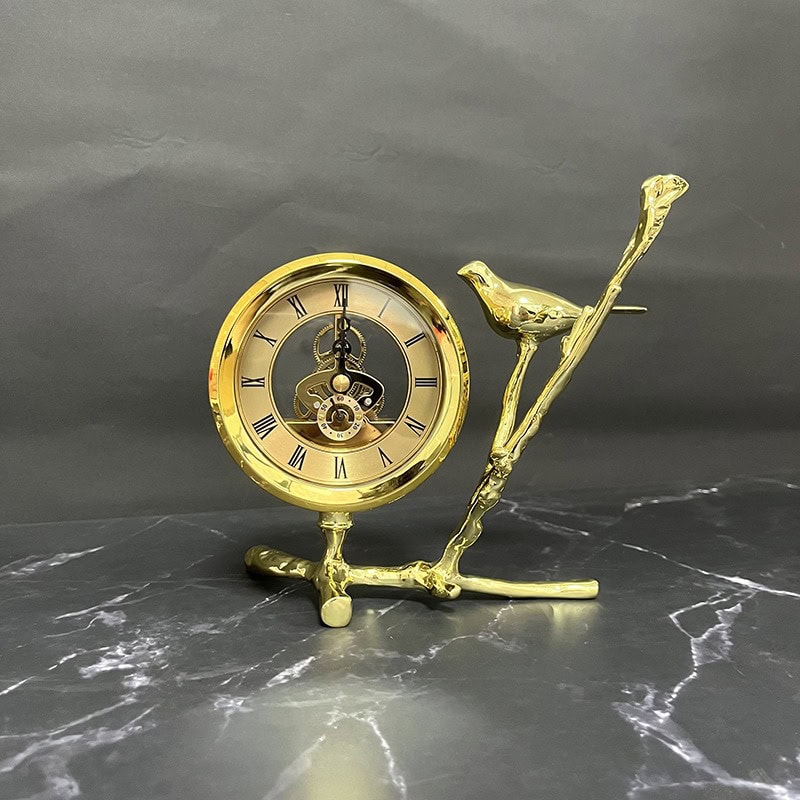 Golden metal bird table clock