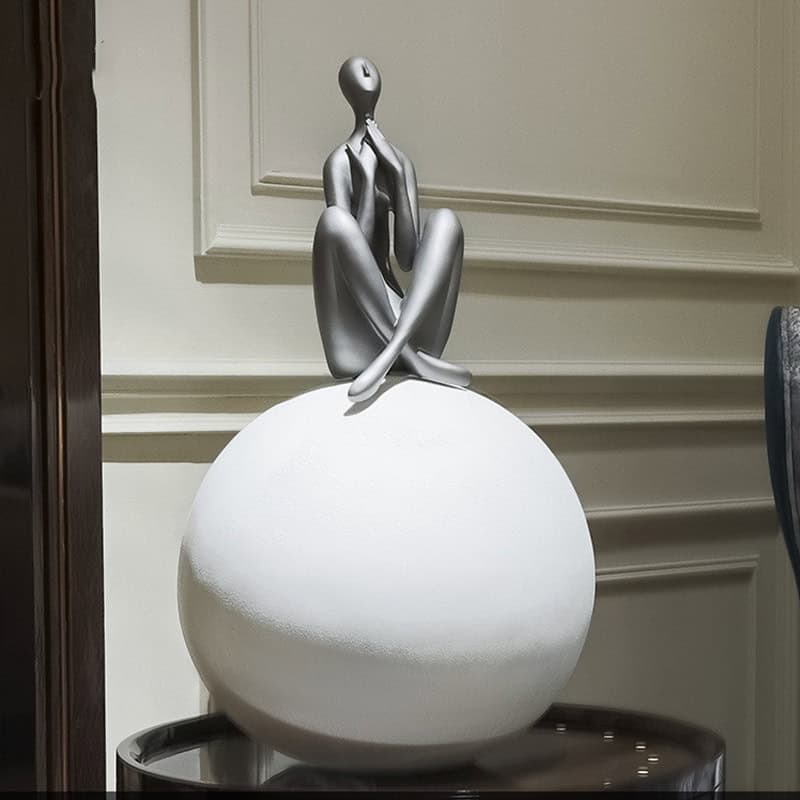 Redefine serenity and sophistication with the Luxe Yoga Decor — a refined symbol of inner peace and harmonious balance. Exquisitely sculpted from premium resin, this elegant piece features a poised female figure gracefully seated atop a smooth white sphere, embodying stillness and mindfulness.