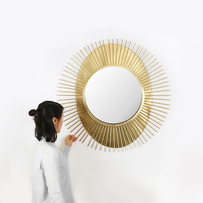 This Sunburst mirror which is Made of high quality glass with metal frame for enhanced quality and stability, the wall mirror will provide clear reflection and durable use. Eye-catching round wall-mounted design, stylish and beautiful. the round wall mirror will bring you a new decoration experience and make your room theme more unique. Gold finish wall mirror can easily match different themed rooms and decor, perfect for bedrooms, living rooms, bathrooms, gallery walls and hallways.
