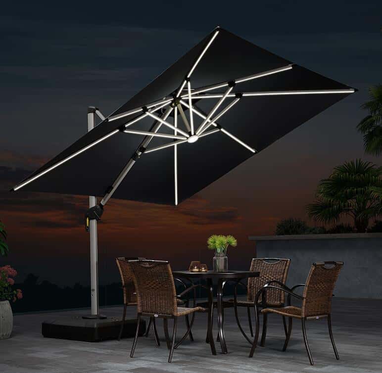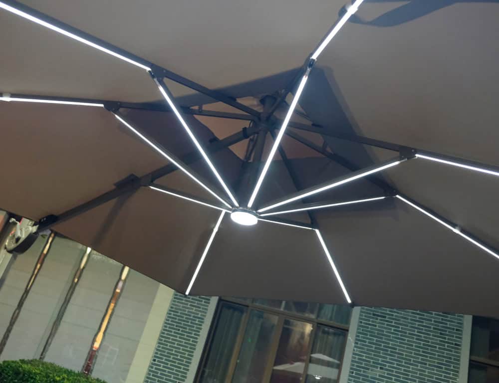 This Parasol with Lights and Led remote control is a decent outdoor umbrella option for family and friends outdoor activities. The umbrella is made of lightweight, durable, and rust-proof aluminium material, which makes it easy to lift and open. Also the Convenient slide and lock operation system offers multiple angles of shading that helps you keep the sun out from many angles and creates cool and comfortable environment for your family and friends.