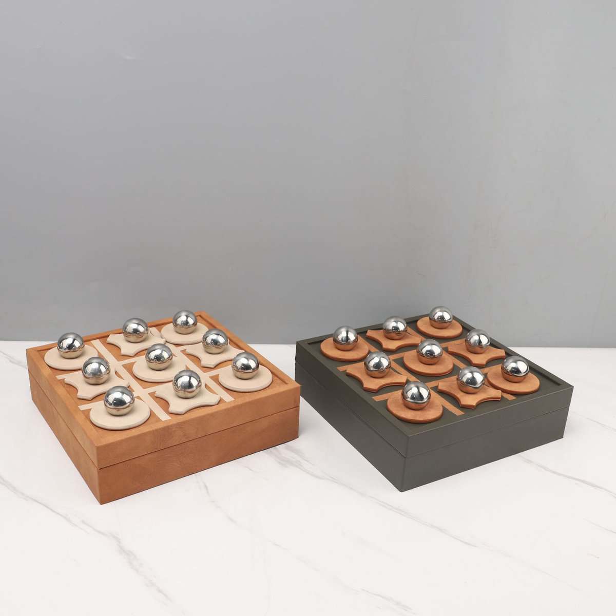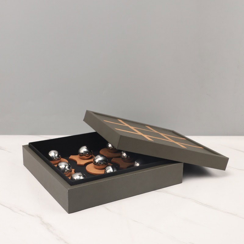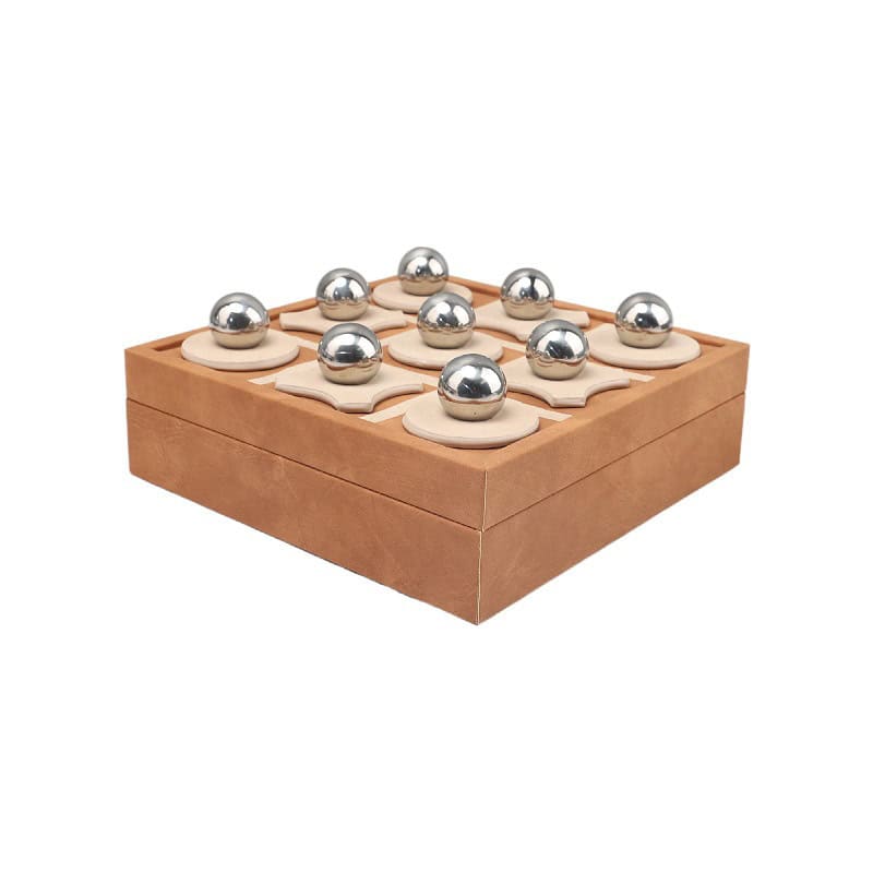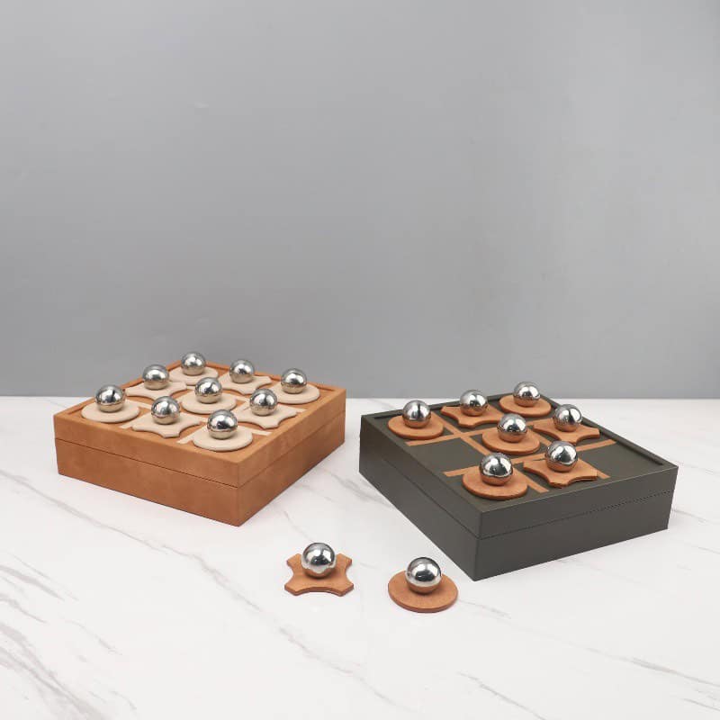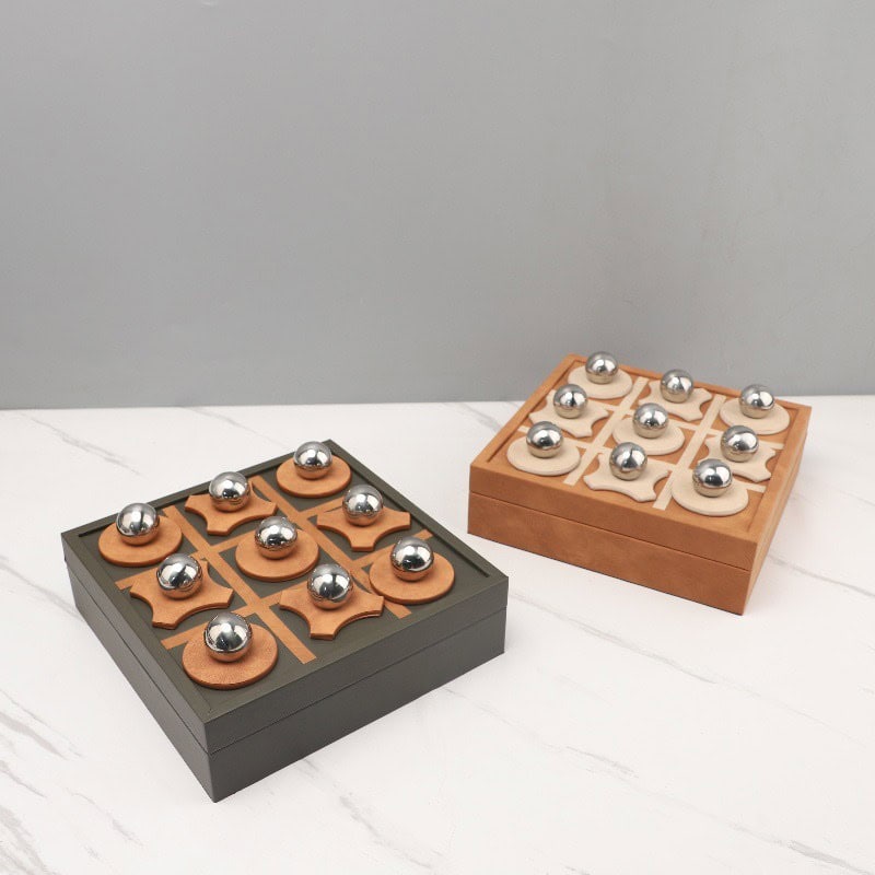 An exquisite fusion of elegance and play, the Regal XO Leather Game Board redefines classic décor with a touch of sophistication. Expertly handcrafted from premium leather, its surface showcases intricate XO stitching patterns adorned with polished metal ball characters, creating a bold visual statement of refined craftsmanship. The board’s box-like construction features a discreet storage compartment, perfect for keeping game pieces or treasured items elegantly tucked away. Designed to elevate any living room, office, or luxury lounge, this piece stands as both a functional game set and a timeless work of art.