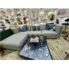 This light grey L-shaped sofa, known as the Velluto Luxe, comfortably seats four people and exudes elegance through its sleek design and refined craftsmanship. Built with gold steel detailing and matching gold steel legs, it blends luxury with subtle sophistication. Measuring 300 cm in length, 190 cm in width, and 85 cm in height, and weighing 55 kg, this sofa is both portable and stylish, making it suitable for various rooms and living spaces. Its smooth texture and compact form make it a perfect choice for those who appreciate modern, fancy comfort.
